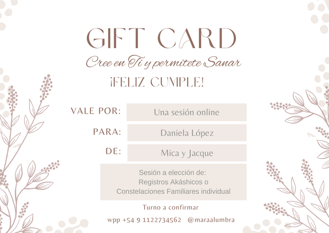 Te ayudo a sorprender, con esta Gift Card, a esa persona querida que sabes que está en la busqueda y necesita una sesión de autoconocimiento y revelación.